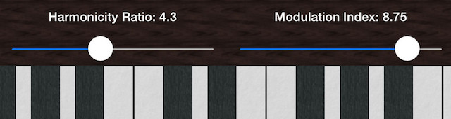 As control "Volume", "Attack Time", "Release Time", "Modulation Index", "Harmonicity Ratio" values, you can generate many sounds!
